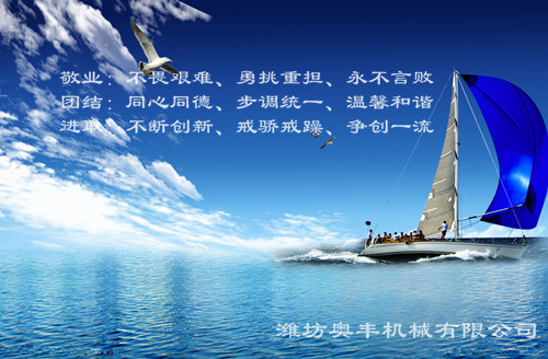 經營理念:誠信經營 持續發展 質量理念:產品質量精進 追求持續改進品牌理念:選擇了奧豐機械 就是選擇了放心公司精神:自強不息 務實進取 追求完善